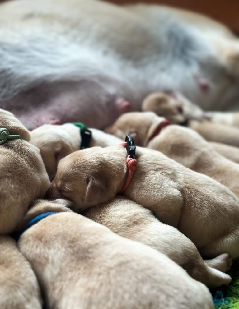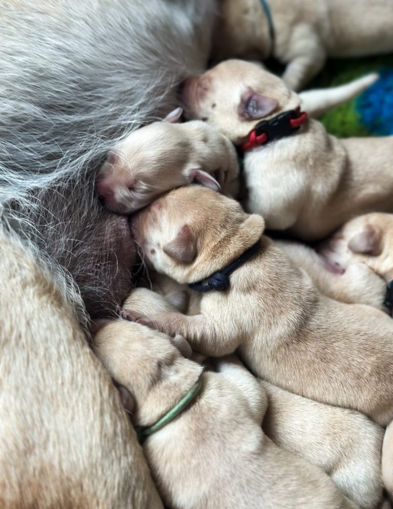 Unsere sieben kleinen Labrador Welpen dürfen nun in aller Ruhe bei ihrer Mama ankommen, wachsen, trinken, schlafen und sich entwickeln. Die ersten Wochen sind besonders wichtig für Bindung, Gesundheit und eine stabile Entwicklung - deshalb genießen sie jetzt ganz viel Nähe, Wärme und Geborgenheit! 🐾